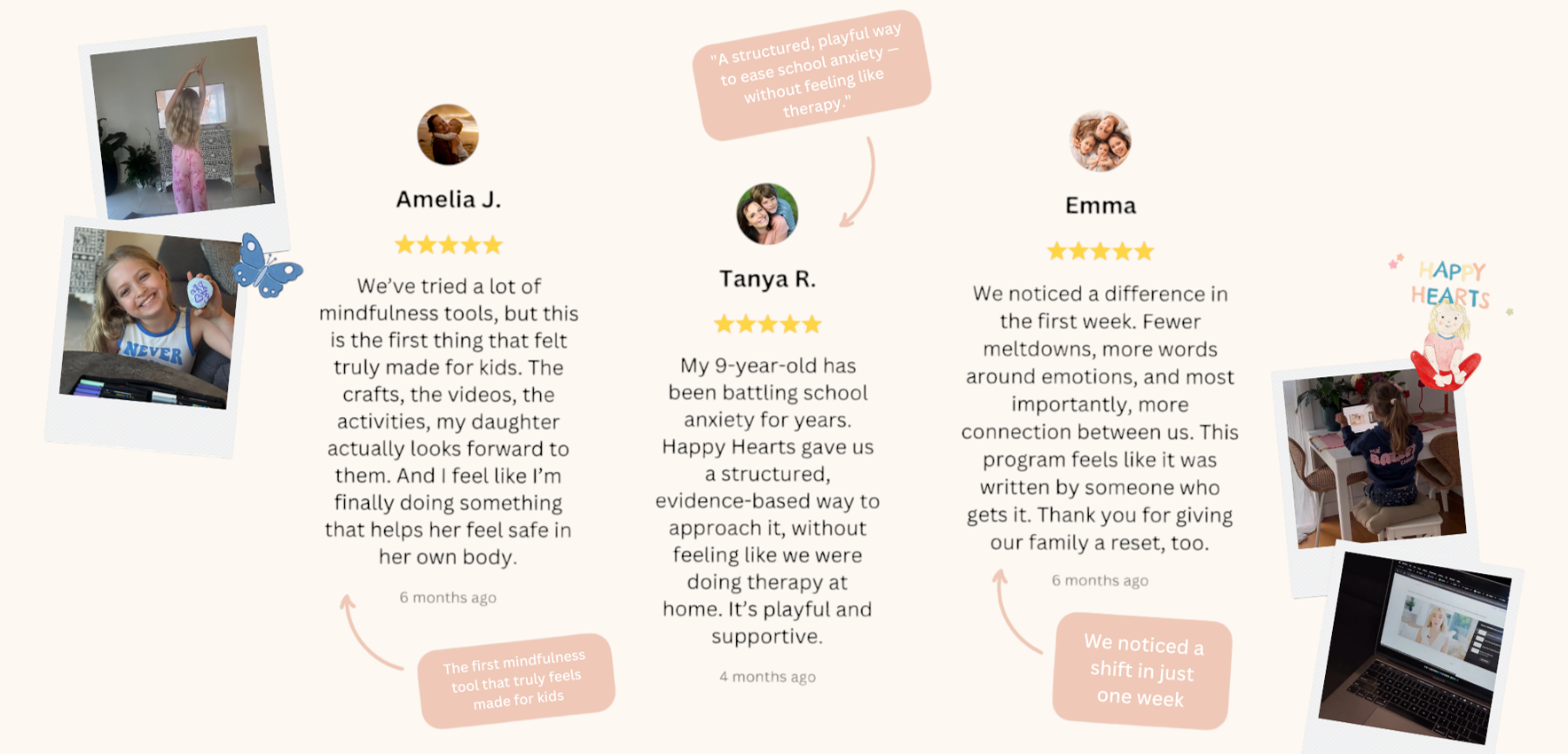 I created this 6-week program called Happy Hearts that teaches kids how to handle their big emotions through fun activities that only take 10-15 minutes a day.